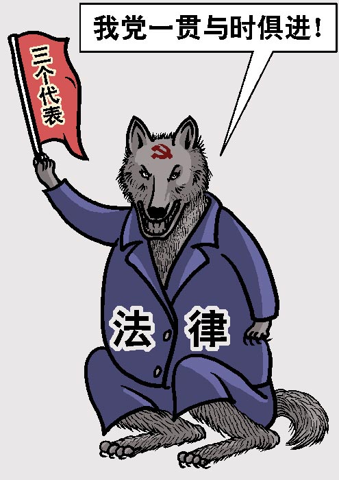 中共为维护特权集团的私利,一方面撕下伪装,彻底抛弃工农民众,另一方面随着越来越多的中共人权丑闻曝光到国际社会,欺骗和流氓手段也“与时俱进”,用“法治”、“市场”、“为民”、“改革”等等时髦的词汇给人灌迷魂汤。穿着西服的中共邪恶流氓本性没有改变,比以前穿中山装的中共更具有迷惑性和欺骗性而已。就像《动物农场》中描述的猪学会了站起了用两条腿走路一样,站着走的猪给了猪新的形象,而猪的“猪性”没有改。