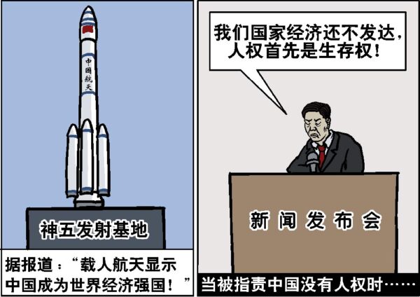 奥运会夺了金牌,运动员要感谢党,党自己更是当仁不让地把虚假的“体育大国”的冠冕作为歌颂党的英明领导的资本;中国被“非典”折腾得够呛,最后却说“靠的是党的基本理论、基本路线、基本纲领、基本经验”才战胜了病毒(《人民日报》语);“神五”上天,本是航天科技人员的贡献,却被中共当作只有它才能领导中国人民挤入世界强国的证据;就连那个2008年的奥运主办权,本是西方伸出的鼓励中共人权改善的橄榄枝,却被中共当作为其“合法性”贴金、大肆镇压民众的借口;外国人看好的“巨大市场潜力”,原本来自13亿中国人民的消费能力,却被中共据为己有,作为要挟西方配合中共统治的锐利武器。