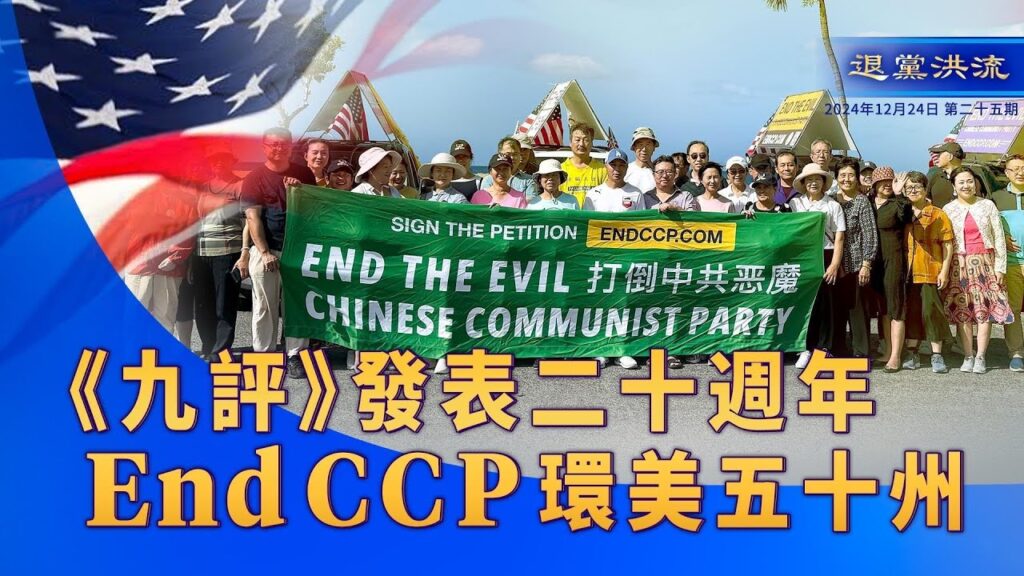 請看完廣告!謝謝! 《退*黨*洪流》第二十五期 《九評》發表20週年 EndCCP環美50州 本期內容提要 1 紀念《九評》發表20週年 各界聲援 2 讀《九評》如夢方醒 墨爾本華人三:退.故事 3 End CCP車隊走遍全美50個州 傳播真相 4 重磅消息:川普將命令自己的政府拒絕所有共產主義者入境 5 「打倒中共惡魔」(ENDCCP)徵簽留言精選 6 三:退.聲明精選——「本人是一名某派出所的網絡警察,本以為自己能夠像電視劇那樣抓壞人保護一方平安,卻被安排監視網絡輿論,刪帖禁言封號。...在三年疫情過後,我更加...認識了中共的邪惡本質。」 7 退*黨*數據解析——截至2024年12月13號,三:退.總人數已達440,139,167人。 觀眾好友們,大家好!歡迎收看本期的《退*黨*洪流》。我是孟竹! 2004年11月,一本奇書《九評共產黨》(簡稱《九評》)橫空出世,在人類歷史上第一次揭開了共產黨的邪靈本質。 《九評》立刻引發了中國人空前的精神大覺醒,掀起了退出邪惡共產黨的黨、團、隊組織(簡稱「三:退.」)的大潮。 今年是大紀元系列社論《九評共產黨》發表20週年,到目前為止已經有4.38億中國人退出了中共黨、團、隊組織,從心靈上徹底拋棄了中共。在這個歷史關鍵時刻,趕緊與中共做出切割,迎接一個沒有中共的新中國,一個沒有共產主義的新世界! 這是本期的開場白。 解體中共洪勢 一、今年是大紀元系列社論《九評共產黨》發表20週年,「全球退*黨*服務中心」在法拉盛舉行盛大集會,來自社會各階層的多位中西來賓發言,讚頌《九評》對中國人和全世界帶來的巨大影響。隨後,大紀元和新!唐!人:電視台舉行《九評共產黨》20周年研討會,多位美國支持,聲援近4.4億中國人退出中共黨、團、隊組織。 二、讀《九評》如夢方醒 墨爾本華人三:退.故事 2004年11月19日,《九評共產黨》系列社論發表,系統揭露了中共的邪惡本質,眾多華人讀後如夢初醒,紛紛退出中共黨、團、隊組織(三:退.)。以下是幾個發生在澳洲墨爾本的真實故事。 三、End CCP車隊走遍全美50個州 傳播真相 「跨越千山萬水,我一次又一次為你而來……」,遐邇聞名的全球退*黨*服務中心「打倒中共惡魔」(End CCP)環美車隊,11月17日完成了在美國第50個州——夏威夷州的車遊。至此,他們圓滿地全部完成了走遍美國50個州進行「打倒中共惡魔」車遊的壯舉。 四、重磅消息:川普將命令自己的政府拒絕所有共產主義者入境 即將成為美國第47屆總統的川普最近宣布:將命令自己的政府拒絕所有共產主義者入境。 五、ENDCCP 徵簽留言精選 「全球退*黨*服務中心」在2020年6月份發起「打倒中共惡魔」(END THE EVIL CHINESE COMMUNIST PARTY)網絡徵簽活動,截止2024年12月份,網站上有超過29種語言,30多個國家的超過465萬民眾在徵簽網站上簽名、留言,發表他們對共產邪惡主義的唾棄和厭惡。 這些留言是摒棄中共的聲音,是對一個沒有共產主義的新世界的期盼..... 六、《三:退.聲明精選》 2004年以來,每天都有大量民眾在全球退*黨*中心網站發表「三:退.」聲明。如今,在「天滅中共」歷史大潮的引領下,全球都出現了清除共產邪惡主義毒素的各種行動,各國紛紛聯手,反擊、圍剿和瓦解中共的滲透。民眾對共產邪惡主義有了更清晰的認識。這些聲明,是生命覺醒後發自內心最真實的聲音...... 七、《退*黨*數據解析》 2004年11月,大紀元發表社論《九評共產黨》後,在全球退*黨*中心網站發表聲明三:退.的人數,每天在持續攀升,其中包括中國大陸、及世界各地華人,截至2024年12月13日,已達440,139,167人,下面請看《退*黨*數據解析》。 感謝Joseph Ma為本欄目作曲!感謝新!唐!人:對本欄目的大力支持! 全球退*黨*中心 2024年12月24日 歡迎來到「退*黨*中心」頻道,若是喜歡,請大家「點贊」和點擊邊上「小鈴鐺」訂閱並與您的親朋好友分享。謝謝! 支持退*黨*中心,捐款網址: https://d1eip459lkif0n.cloudfront.net/donation 因為我們是符合美國聯邦501(c)(3)的非盈利機構,美國的朋友,您的捐款可獲得聯邦抵稅。 支持退*黨*中心,上亞馬遜購物時請使用這個連結 https://smile.amazon.com 第一次登陸smile.amazon.com時,要選自己支援的非盈利組織,選 The Tuidang Center (Global Service Center for Quitting Chinese Communist Party, Inc) ,那裡價格和amazon.com的一模一樣,東西也一模一樣。 --------------------------------------------------------------------------------------- 敬請關注退*黨*中心Tuidang Center...